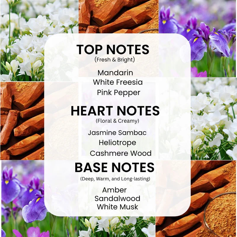 The top notes introduce a fresh, airy accord that instantly uplifts the senses—clean, crisp, and comforting. As the perfume settles, its heart reveals a creamy blend of woods and gentle florals that bring warmth, softness, and balance. The base is where the magic deepens—smooth amber and delicate smoky nuances come forward, wrapping the wearer in a sensual and long-lasting embrace.